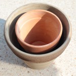- 2 pots en terre cuite non vernis (un gros et un plus petit). Comptez 40 cm de diamètre intérieur pour le gros, 25 cm pour le petit. Et 40 cm de hauteur pour le gros pot. Les pots ne doivent pas être vernis car ce dernier empêche l’évaporation.